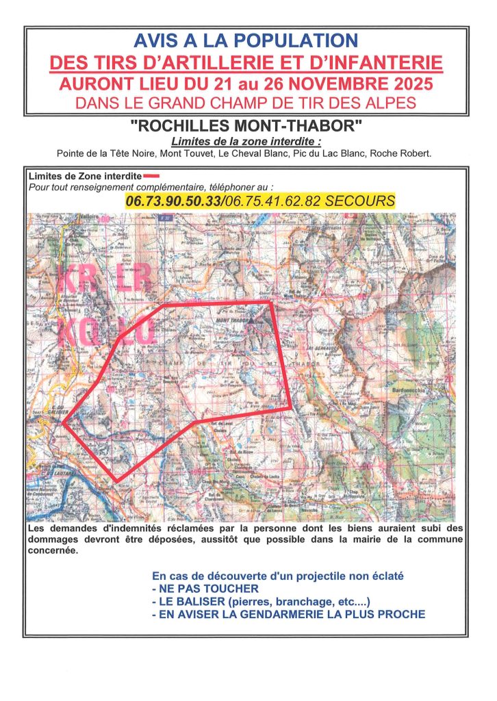 Des tirs d’artillerie et d’infanterie auront lieu du 21 au 26 novembre…