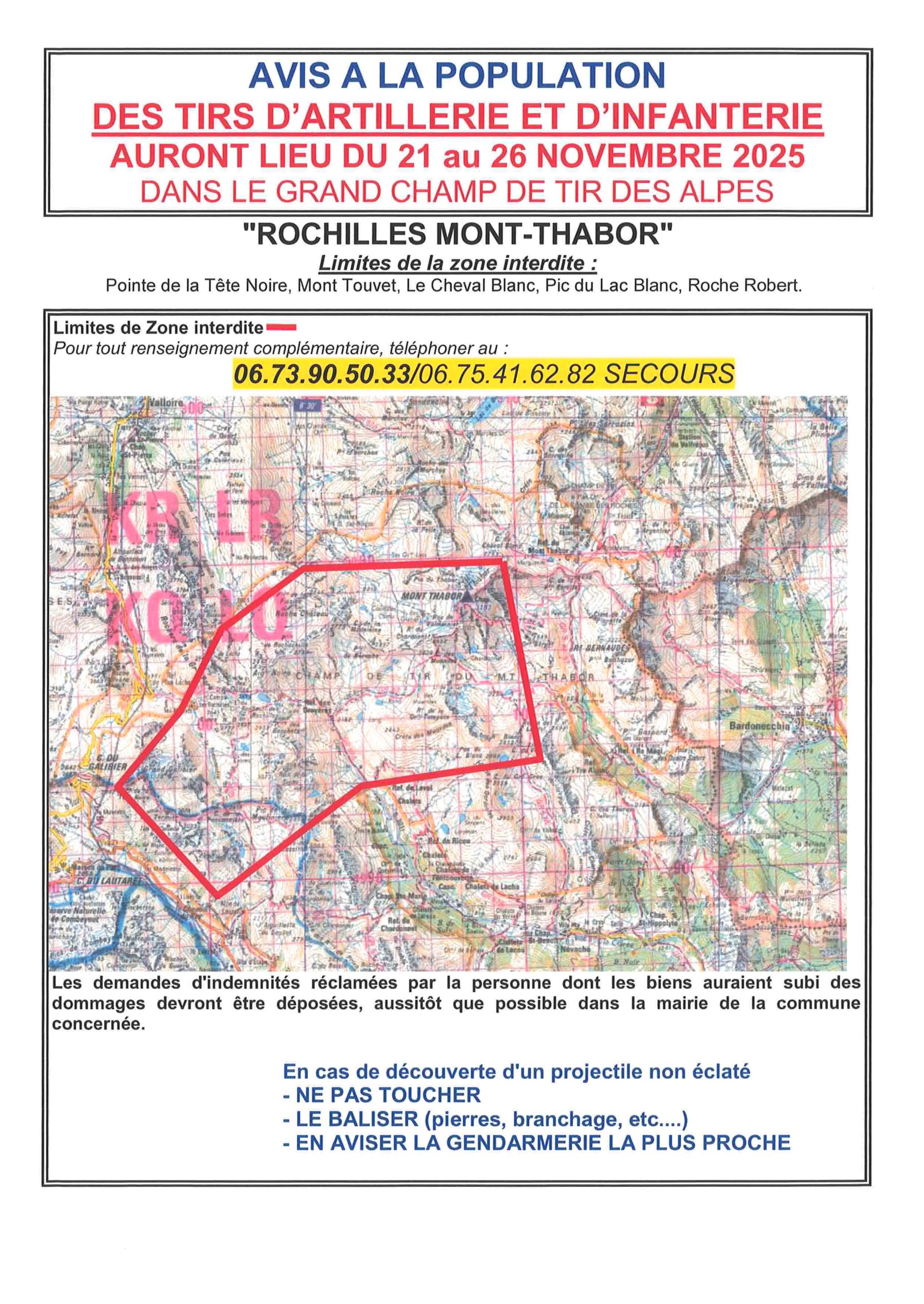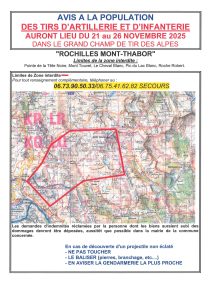 Des tirs d’artillerie et d’infanterie auront lieu du 21 au 26 novembre 20254 dans le grand champ de tir des alpes “Rochilles Mont-Thabor”
